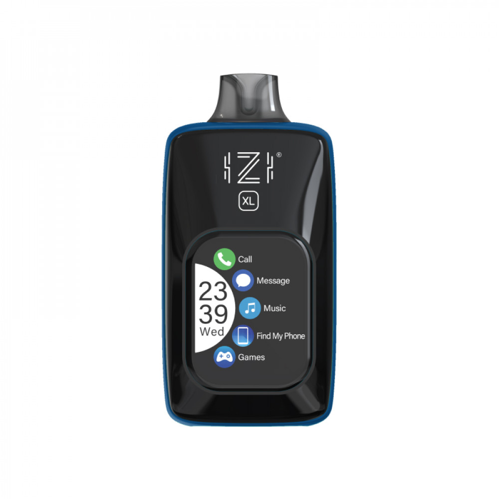 IZI MODEL XL SMART 30000 — умная электронная сигарета из Шэньчжэня с функциями смарт-гаджета. На 2-дюймовом TFT-дисплее отображаются уведомления, время и погода. Устройство подключается к телефону через Bluetooth для управления музыкой и звонками.